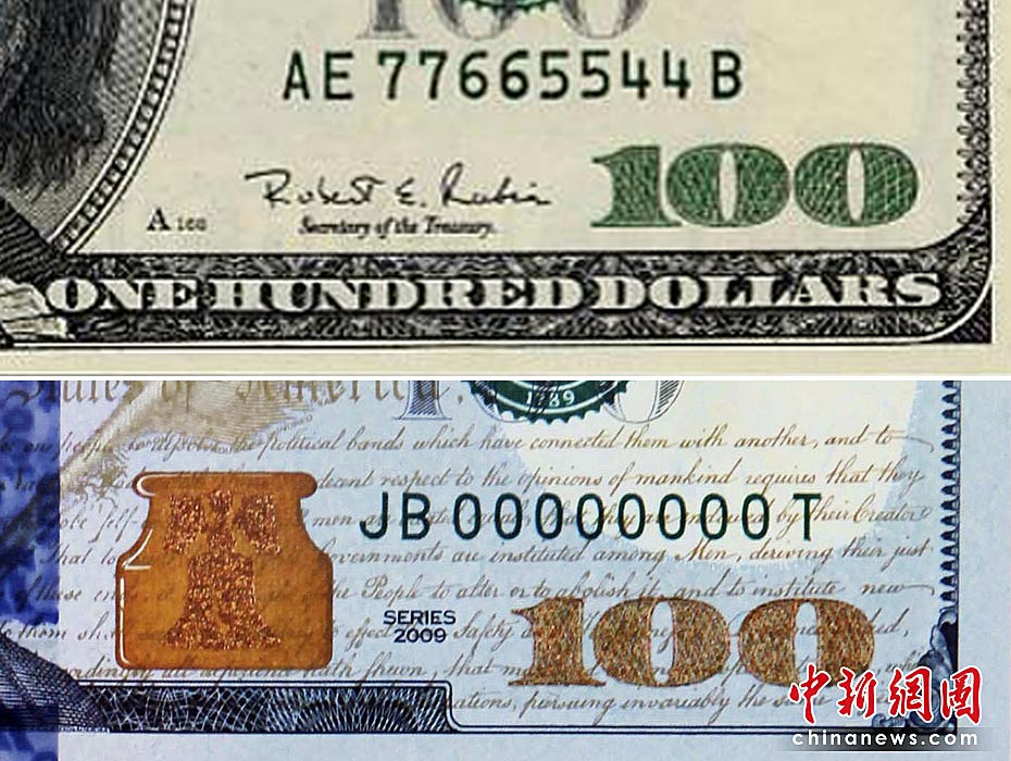 美國發(fā)行新款百元美鈔