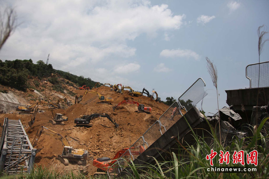 4月26日,臺灣“北二高”基隆段山崩斷橋意外第2天,大批工程人員使用近50臺怪手持續(xù)開挖,但尚未尋獲被埋的車輛和失蹤者。這起“走山”斷橋意外發(fā)生在25日,一座高百米的山坡全然崩坍,土石覆蓋道路長約200米、面積達3個足球場之大,令南下北上的交通大受影響。 董會峰 攝