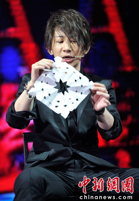 4月25日,由《時尚芭莎》雜志社主辦的第8屆“BAZAAR明星慈善夜”活動在上海舉行,圖為劉謙為現(xiàn)場嘉賓表演精彩炫目的魔術(shù)。 中新網(wǎng)記者 金碩 攝