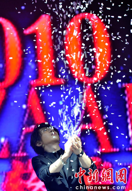 4月25日,由《時尚芭莎》雜志社主辦的第8屆“BAZAAR明星慈善夜”活動在上海舉行,圖為劉謙為現(xiàn)場嘉賓表演精彩炫目的魔術。 中新網(wǎng)記者 金碩 攝