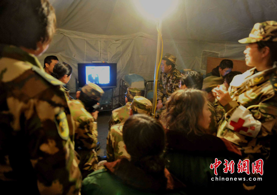 武警青?傟犛駱渲ш犑亲钕韧度肟拐鹁葹牡南蠕h部隊,地震發(fā)生時恰逢部隊出操,營房嚴重受損而官兵平安無恙。這里立即成為抗震救災的軍民和媒體的大本營之一,醫(yī)療救護隊和新型炊事車晝夜為軍民服務。集結(jié)在地震災區(qū)的各路部隊從4月低之前全面轉(zhuǎn)入安置群眾和災后重建,這里的的后勤已經(jīng)得到基本保障。 中新社記者 賈國榮 攝