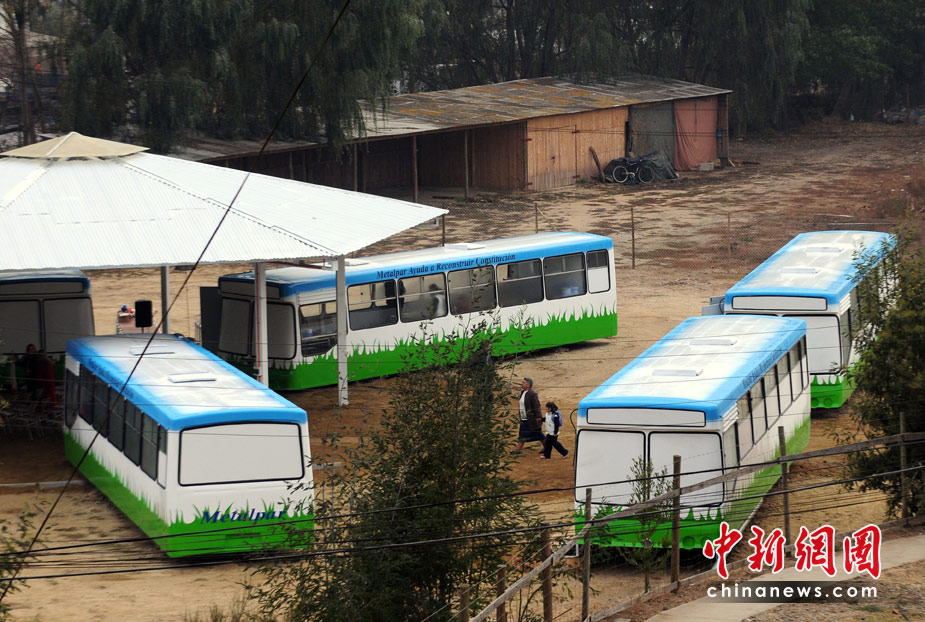 4月26日,今年2月遭受8.8級強烈地震的智利康塞普西翁市,兒童們在“巴士學!崩锷险n。