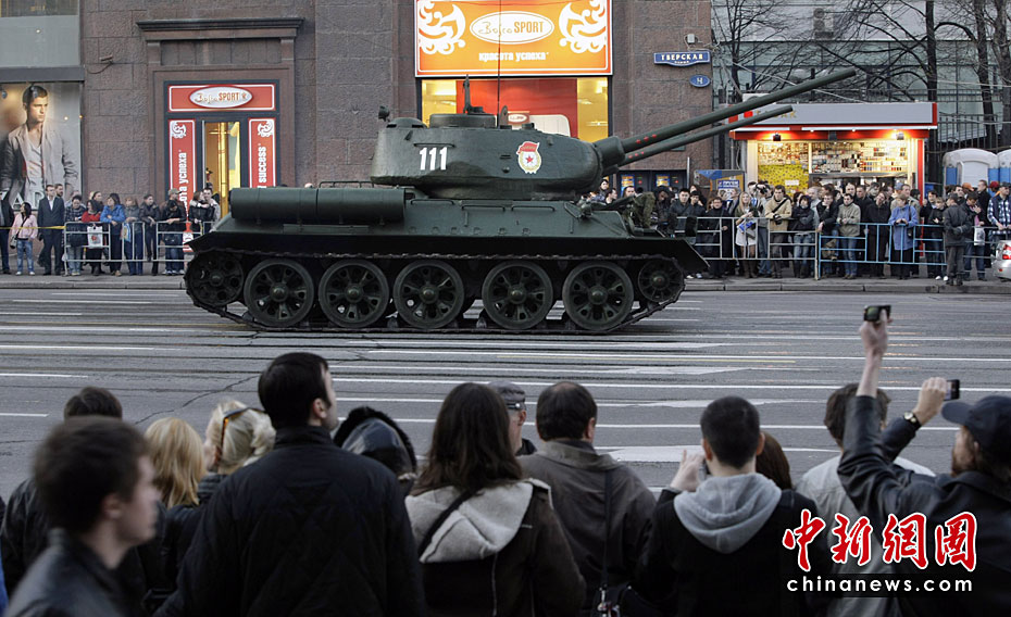 此次紅場(chǎng)閱兵包括兩部分內(nèi)容:歷史部分和現(xiàn)代部分。歷史部分由身穿衛(wèi)國(guó)戰(zhàn)爭(zhēng)時(shí)期軍服的士兵在鵝卵石道上進(jìn)行,同時(shí)還會(huì)有9輛T-34坦克和8輛SU-100自行火炮。現(xiàn)代部分由13輛老虎裝甲車、BTR-80裝甲車、BMP-3步兵戰(zhàn)車、T-90A坦克和S-400防空系統(tǒng)等。圖片來(lái)源:中國(guó)新聞網(wǎng)