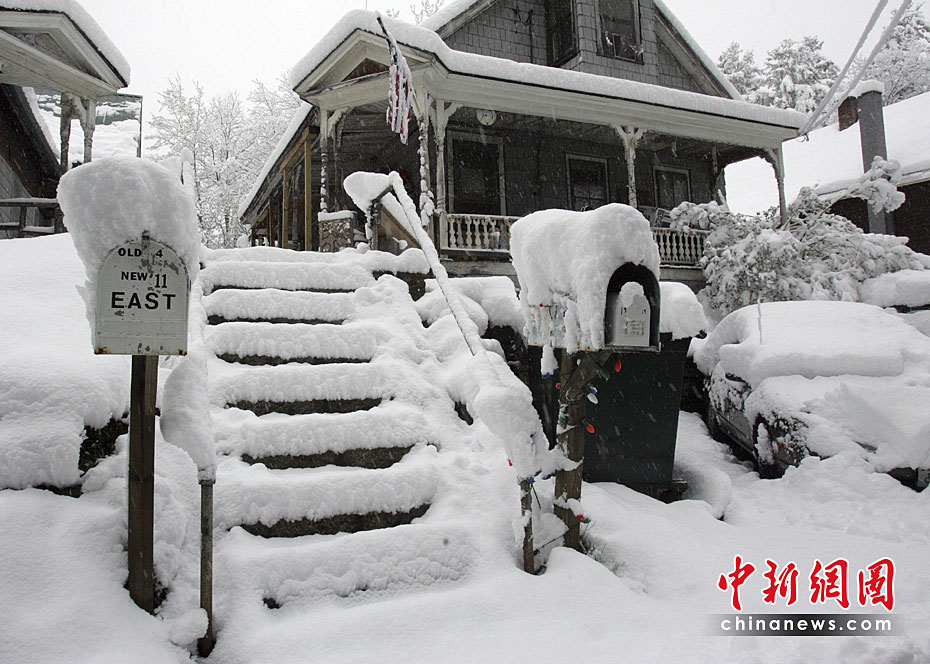當(dāng)?shù)貢r間4月28日,美國佛蒙特州部分地區(qū)遭大雪襲擊。這場大雪給人們的出行帶來不便。圖片來源:中國新聞網(wǎng)