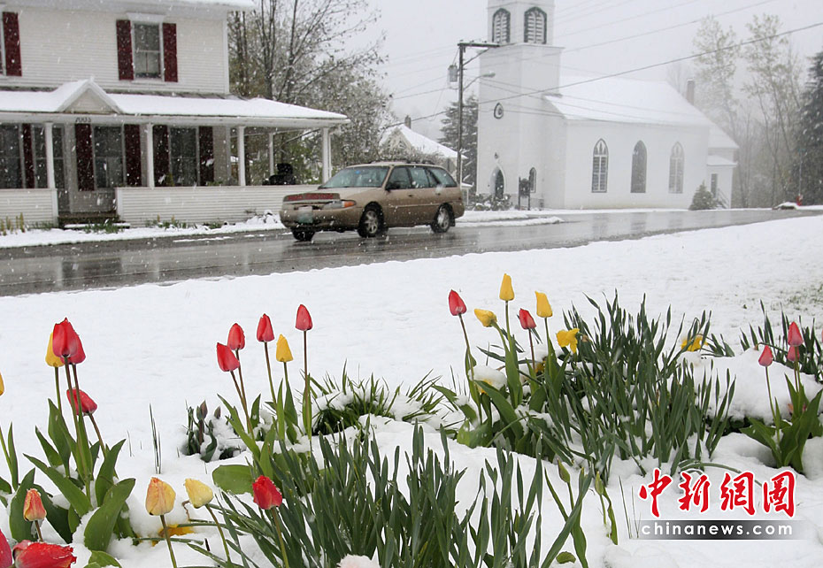 當(dāng)?shù)貢r(shí)間4月28日,美國佛蒙特州部分地區(qū)遭大雪襲擊。這場大雪給人們的出行帶來不便。圖片來源:中國新聞網(wǎng)