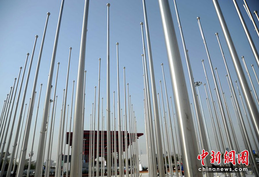 4月29日,中國上海市2010年世博會旗林升旗儀式現(xiàn)場準(zhǔn)備就緒。許康平 攝(CFP)
