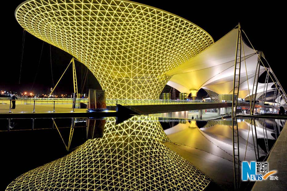 靜待開幕的世博園沉浸在一片暮色中,流光溢彩,給人無(wú)限遐想。從外灘到世博園,“夜”上海不斷延伸,讓人激情跳躍。圖片來(lái)源:新華網(wǎng)孫巍攝