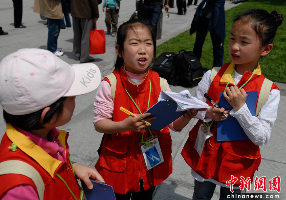 30日上午,記者在上海外灘采訪(fǎng)時(shí)遇到小主人報(bào)新聞學(xué)校的“小記者”們?cè)诓稍L(fǎng),成為他們今天的第一個(gè)采訪(fǎng)對(duì)象!靶∮浾摺眰冏铌P(guān)心的問(wèn)題是關(guān)于世博會(huì),“如何讓世界變得更美好”。她們都表示非常想去看世博會(huì),最想看的是中國(guó)館,但是要留到最后看,“因?yàn)槠渌^都會(huì)拆掉,中國(guó)館會(huì)保留下來(lái)”!靶∮浾摺眰冋f(shuō),自己要從身邊小事做起,做有文明有素質(zhì)的人,并表示希望自己將來(lái)成為真正的“大記者”,更好地報(bào)道上海。吳歆/文 王紅綱/圖