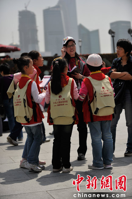 30日上午,記者在上海外灘采訪時(shí)遇到小主人報(bào)新聞學(xué)校的“小記者”們?cè)诓稍L,成為他們今天的第一個(gè)采訪對(duì)象!靶∮浾摺眰冏铌P(guān)心的問(wèn)題是關(guān)于世博會(huì),“如何讓世界變得更美好”。她們都表示非常想去看世博會(huì),最想看的是中國(guó)館,但是要留到最后看,“因?yàn)槠渌^都會(huì)拆掉,中國(guó)館會(huì)保留下來(lái)”!靶∮浾摺眰冋f(shuō),自己要從身邊小事做起,做有文明有素質(zhì)的人,并表示希望自己將來(lái)成為真正的“大記者”,更好地報(bào)道上海。吳歆/文 王紅綱/圖