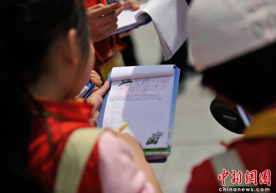 30日上午,記者在上海外灘采訪時(shí)遇到小主人報(bào)新聞學(xué)校的“小記者”們?cè)诓稍L,成為他們今天的第一個(gè)采訪對(duì)象。“小記者”們最關(guān)心的問題是關(guān)于世博會(huì),“如何讓世界變得更美好”。她們都表示非常想去看世博會(huì),最想看的是中國(guó)館,但是要留到最后看,“因?yàn)槠渌^都會(huì)拆掉,中國(guó)館會(huì)保留下來”!靶∮浾摺眰冋f,自己要從身邊小事做起,做有文明有素質(zhì)的人,并表示希望自己將來成為真正的“大記者”,更好地報(bào)道上海。吳歆/文 王紅綱/圖