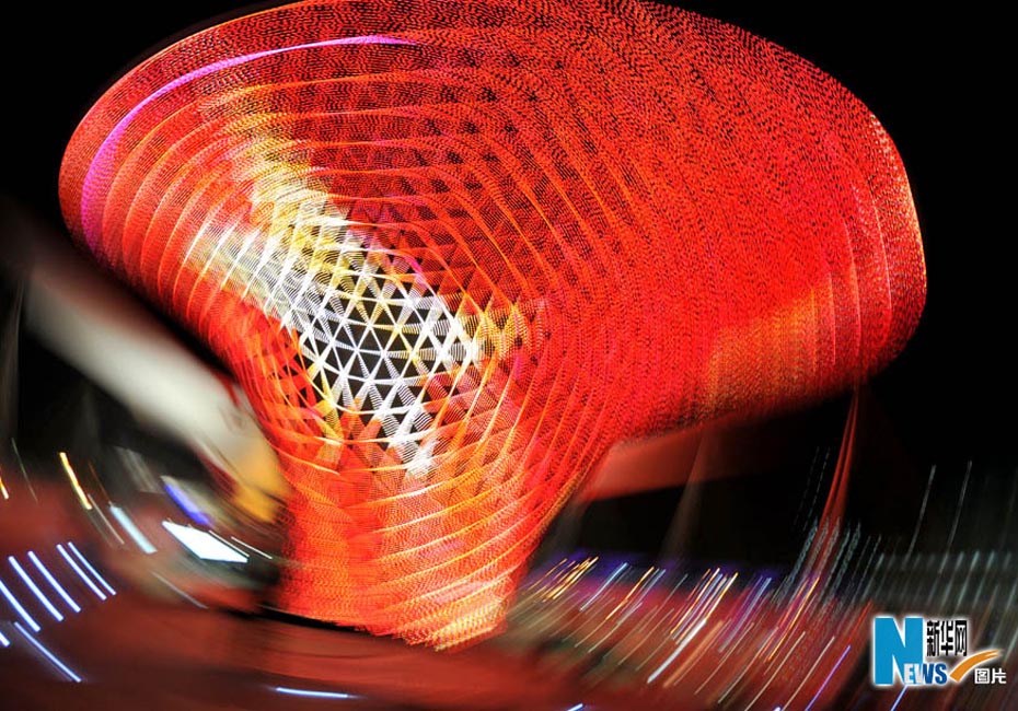 夜色下的世博園,迷離而夢(mèng)幻。圖為世博軸陽(yáng)光谷。圖片來(lái)源:新華網(wǎng) 郭毅攝