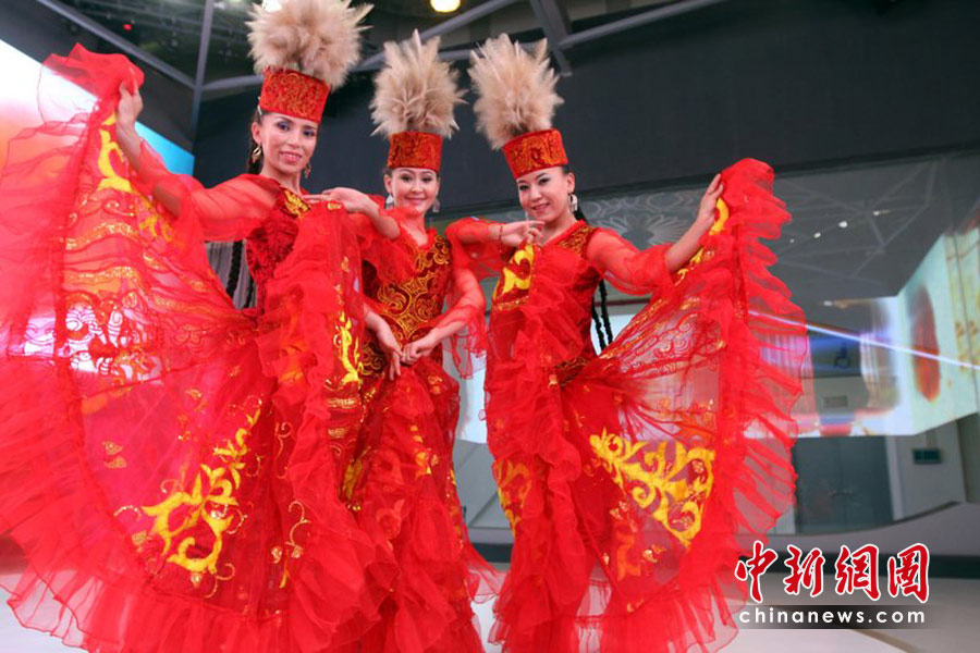 4月30日晚,舉世矚目的上海世博會(huì)開(kāi)幕式將在黃浦江畔世博園區(qū)舉行。圖為4月30日,來(lái)自新疆阿勒泰的哈薩克族舞蹈演員正在世博園區(qū)新疆展館緊張排練準(zhǔn)備參加世博會(huì)開(kāi)幕演出。張秀科 攝
