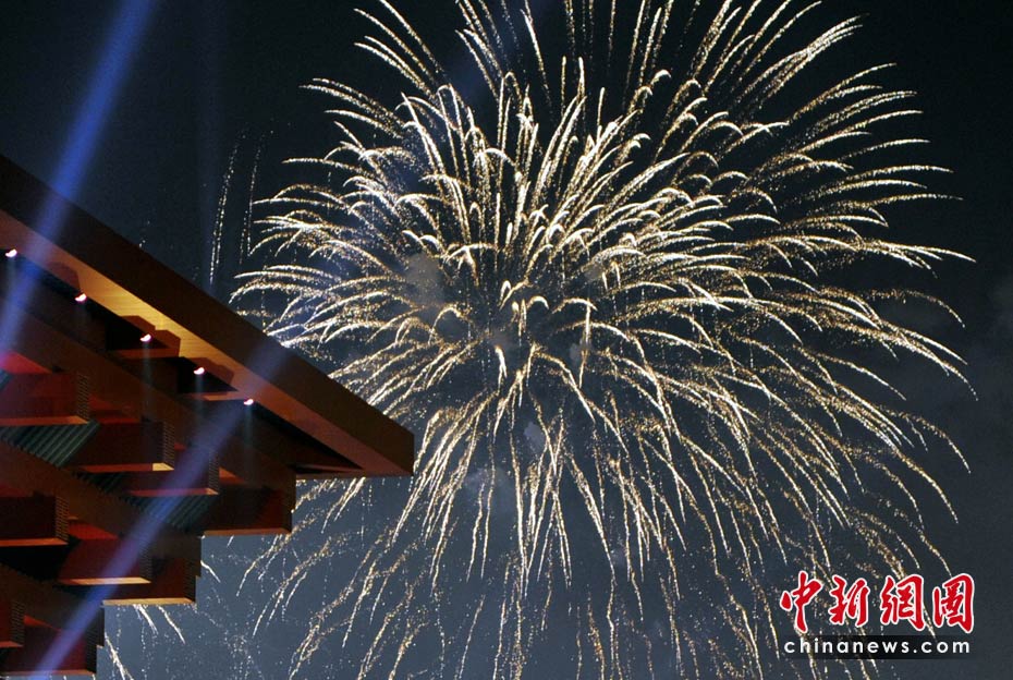 世博會絢麗多彩的焰火表演