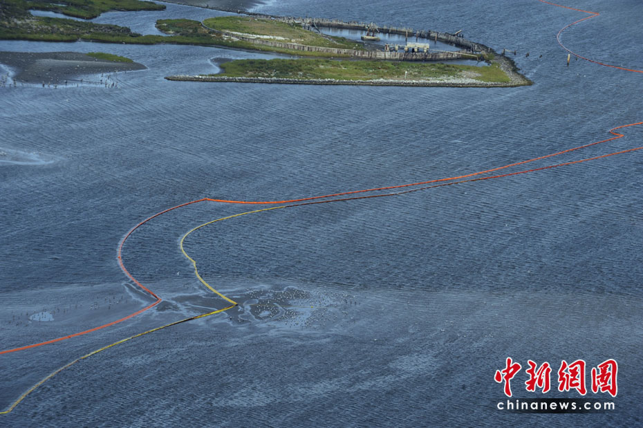 4月30日,在美國路易斯安那州海岸,為阻隔原油擴散而設(shè)的護欄帶被海風浪沖到岸邊。當天,美國總統(tǒng)奧巴馬下令調(diào)查墨西哥灣石油鉆井平臺爆炸事件,以避免將來類似事件再次發(fā)生。平臺爆炸沉沒后泄漏的原油當天已漂至美國沿岸。圖片來源:中國新聞網(wǎng)