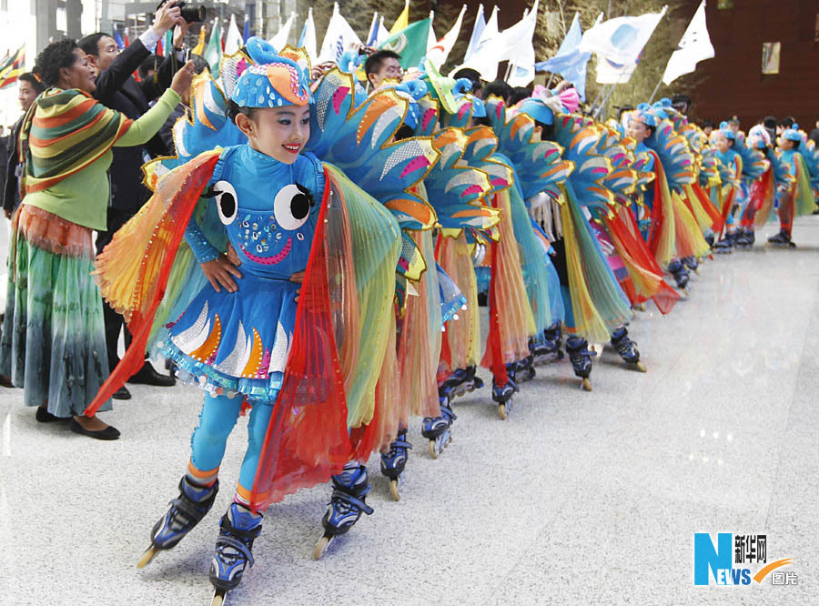 5月1日,中國2010年上海世博會開園儀式在上海世博園世博中心舉行。這是小朋友們在開園儀式上表演。裴鑫攝(新華網(wǎng))