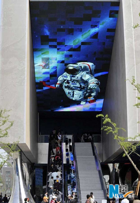 5月1日,上海世博會(huì)正式開園迎客,首批游客入園參觀。眾多游客前往位于上海世博園浦西園區(qū)的太空家園館參觀。 朱崢 攝