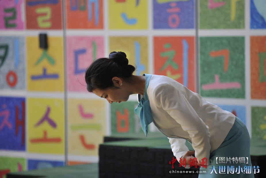 5月1日,上海世博會(huì)正式開(kāi)園,當(dāng)日有20萬(wàn)人次的游客參觀了世博園。世博首日,許許多多的小細(xì)節(jié)都帶給人一種全新的體驗(yàn)。圖為韓國(guó)館禮儀小姐以甜美的笑容面對(duì)第一批進(jìn)館的游客。中新網(wǎng)記者 王紅綱 攝