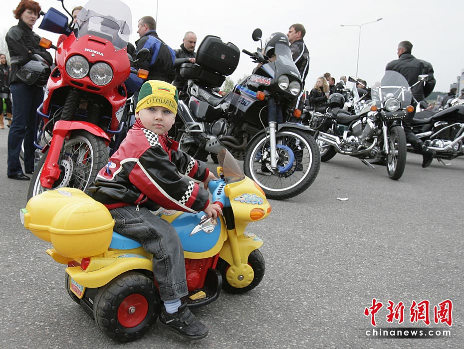 立陶宛機車大游行 小童美女湊熱鬧