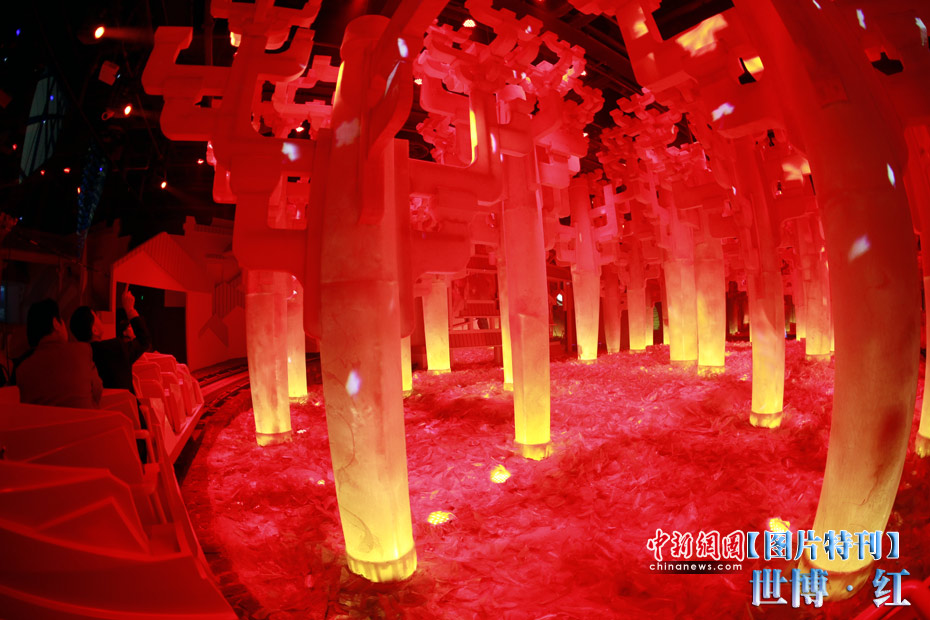 紅色象征著熱量與活力,紅色也象征著興奮與激情,在世博園區(qū)內(nèi)游覽,總會(huì)有一抹濃艷的紅色闖入到記者鏡頭之中,讓世博變得更加火辣。圖為中國(guó)館內(nèi)一角。中新社記者 盛佳鵬 攝