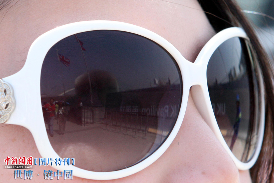 世博園開園3天,天氣一直晴熱,不少游客帶起墨鏡來(lái)遮擋刺目的陽(yáng)光,從鏡片的折射中看世博園,別有一番趣味。中新社記者 湯彥俊攝