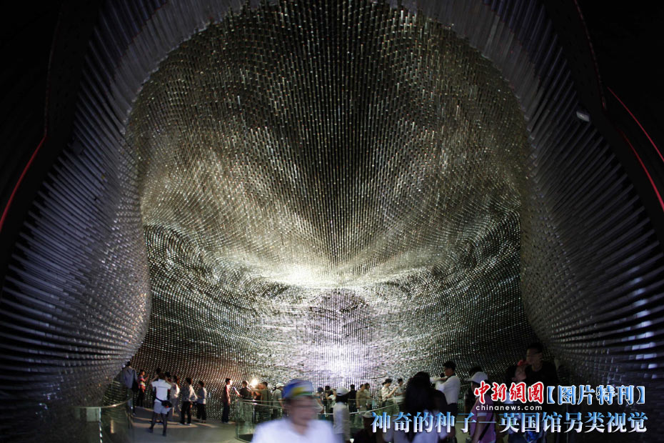上海世博園開園才數(shù)日,自號“種子圣殿”的英國館已成人氣最旺場館之一。該館由6萬根亞克力桿巧妙構成,隨風搖動,頗為新奇。其每根桿子里都含有植物種子。中新社記者 盛佳鵬 攝