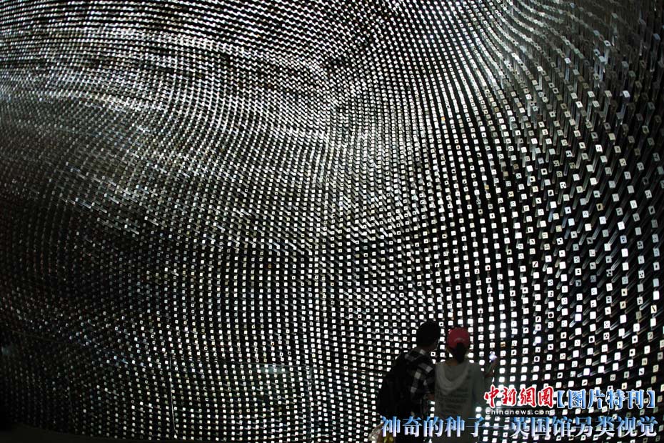 上海世博園開園才數(shù)日,自號(hào)“種子圣殿”的英國(guó)館已成人氣最旺場(chǎng)館之一。該館由6萬根亞克力桿巧妙構(gòu)成,隨風(fēng)搖動(dòng),頗為新奇。其每根桿子里都含有植物種子。中新社記者 盛佳鵬 攝