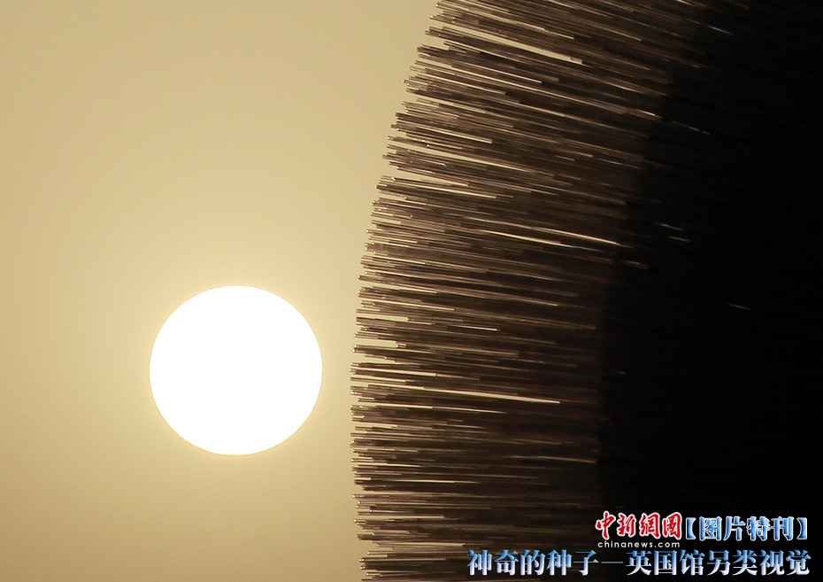 上海世博園開(kāi)園才數(shù)日,自號(hào)“種子圣殿”的英國(guó)館已成人氣最旺場(chǎng)館之一。該館由6萬(wàn)根亞克力桿巧妙構(gòu)成,隨風(fēng)搖動(dòng),頗為新奇。其每根桿子里都含有植物種子。中新社記者 盛佳鵬 攝