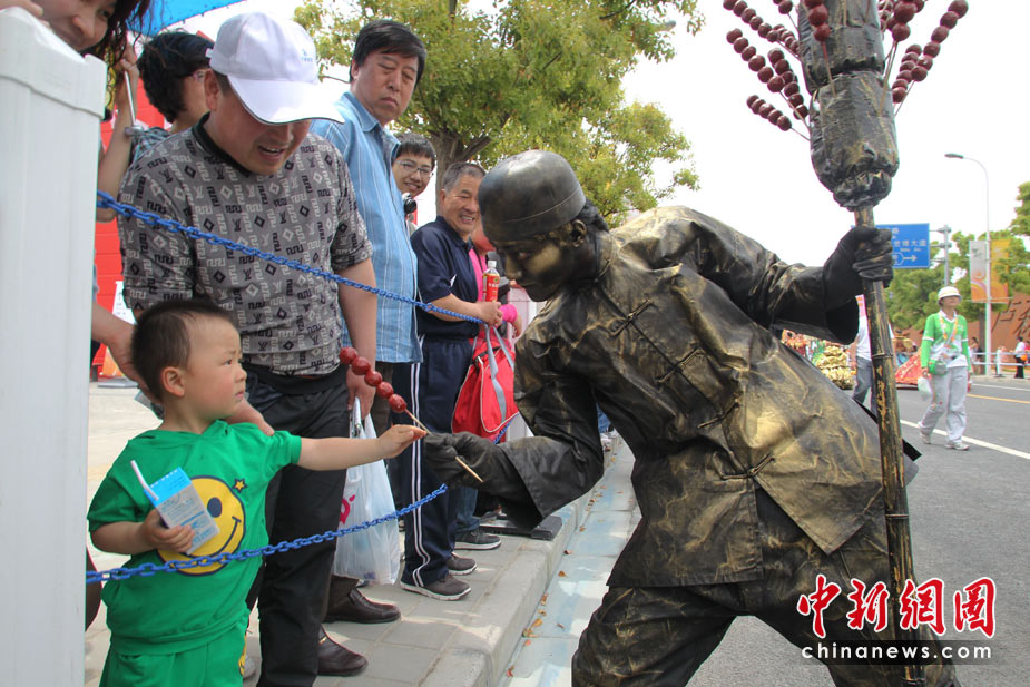 5月4日,上海世博會(huì)北京周花車巡游演員與觀眾互動(dòng)。當(dāng)日,世博會(huì)北京周開幕。中新社發(fā) 蘇丹 攝