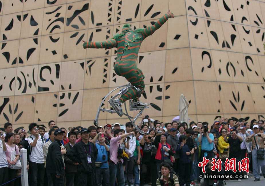 5月4日,上海世博會(huì)北京周花車(chē)巡游演員在世博園街頭表演。當(dāng)日,世博會(huì)北京周開(kāi)幕。 中新社發(fā) 蘇丹 攝