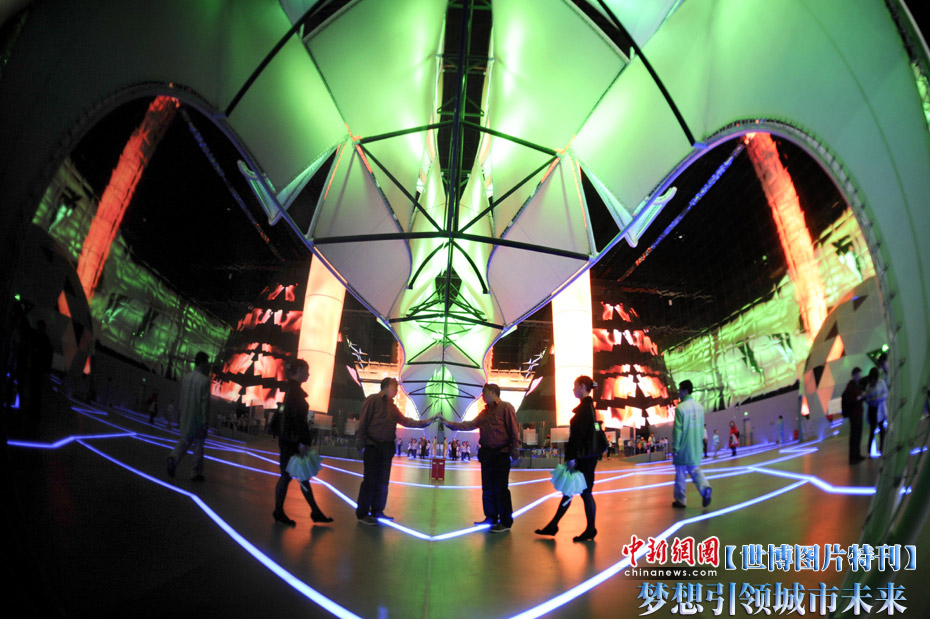 上海世博會(huì)城市未來(lái)館位于E片區(qū),館內(nèi)的展示以互動(dòng)方式開(kāi)始,邀請(qǐng)參觀者暢想未來(lái)的城市,然后運(yùn)用影片、書(shū)籍和雕塑等方式,體現(xiàn)歷史上人們對(duì)未來(lái)城市的夢(mèng)想、設(shè)計(jì)與實(shí)踐,表明未來(lái)城市建立在今日挑戰(zhàn)的基礎(chǔ)上,并且暢想未來(lái)城市的各種可能,闡述推動(dòng)人類進(jìn)步永恒不變的精神元素。展望未來(lái)城市,一方面人類城市的種種現(xiàn)實(shí)、挑戰(zhàn)和危機(jī)推動(dòng)人們?cè)谒伎贾袑ふ页鞘械某雎,另一方面人類不懈的?chuàng)新能力和科技的飛速進(jìn)步也把人們引向不可思議的未來(lái)城市。中新社記者 廖攀 攝