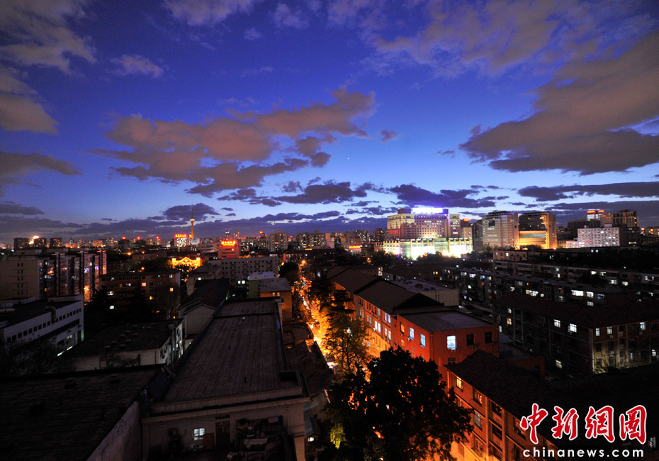 5月5日立夏,京城降雨今晨剛剛結(jié)束,霧氣伺機(jī)又起。傍晚時(shí)分,隨著四級(jí)北風(fēng)的到來,京城天氣逐漸轉(zhuǎn)晴,霧氣慢慢消散天空彤云密布夜色瑰麗。中新網(wǎng)記者 金碩 攝