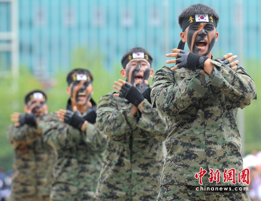 韓國(guó)突擊隊(duì)員兒童節(jié)為孩子們精彩表演