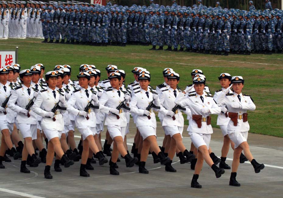 海軍陸戰(zhàn)隊(duì)女兵方隊(duì)通過主席臺。圖片來源:新華網(wǎng) 查春明攝