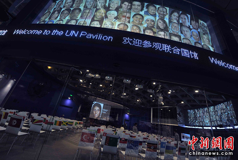 一所藍色的簡樸平房,在5月開園的上海世博會大道邊上,極不顯眼。但是,聯(lián)合國聯(lián)合館的鮮明會標,特別吸引人。這個展館集中了世界衛(wèi)生組織、世界銀行和聯(lián)合國的兒童基金會、糧農組織、教科文組織等22個機構。圖片來源:中國新聞網(wǎng) 賈國榮 攝