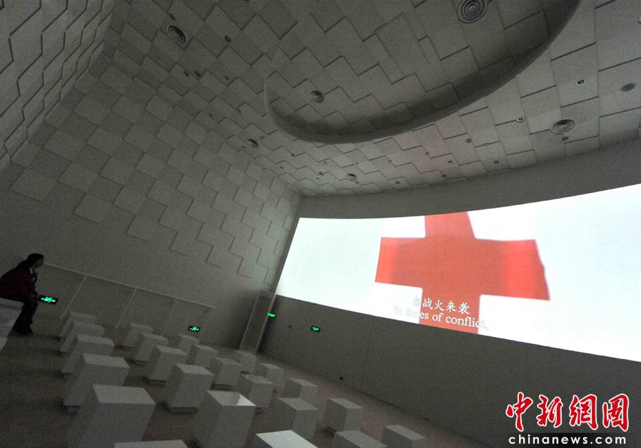 5月8日是上海世博會(huì)的紅十字會(huì)和紅新月會(huì)館榮譽(yù)日,兩會(huì)在簡(jiǎn)樸如醫(yī)療帳篷的館里,運(yùn)用聲光電展示大量紀(jì)實(shí)圖片,于大災(zāi)大難中顯示救死扶傷的大愛,可歌可泣。這兩個(gè)鮮紅標(biāo)志的人道救援組織,一百多年來遵循著堅(jiān)定不移的宗旨——“經(jīng)歷戰(zhàn)爭(zhēng)與災(zāi)難的黑暗,我們更需要人道的光芒”。世界的未來,還將依靠它紅色的光明,去驅(qū)散天災(zāi)人禍的陰影。中新社發(fā) 賈國(guó)榮 攝