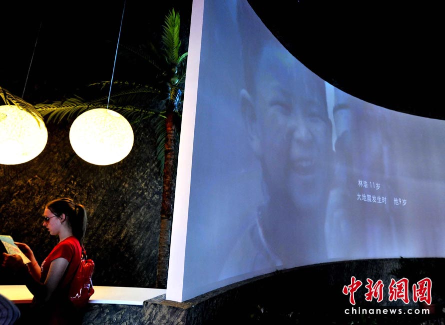 5月開園的上海世博會(huì),情系即將到來的“5.12”汶川大地震兩周年慘烈的紀(jì)念日。在一些主題館、國(guó)際組織聯(lián)合館和企業(yè)館里,有的以模擬器親歷汶川7.9級(jí)大地震的震撼,有的以聲情并重的超級(jí)熒幕,不斷重復(fù)播放著那些銘記遇難同胞、救災(zāi)軍民和舉世捐助的影像,令歡聚世博會(huì)的參觀者于此含悲難忘:地震威脅不斷,人間大愛無疆,才是城市生活更加美好的真諦。 中新社記者 賈國(guó)榮攝