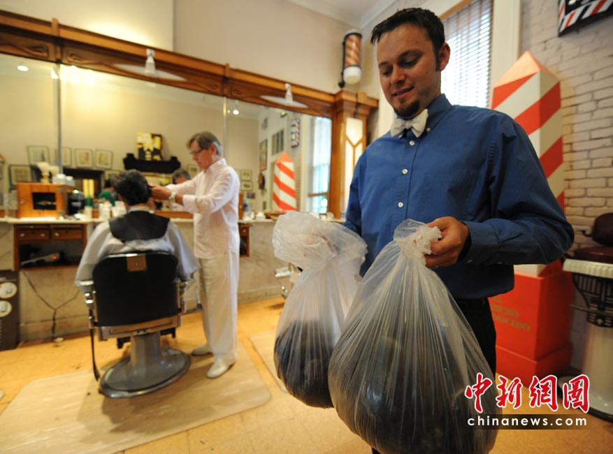 5月8日,為減少墨西哥灣原油泄漏事件給生態(tài)環(huán)境造成的破壞,路易斯安那州目前已經(jīng)在該州境內(nèi)設(shè)置了9處地點(diǎn)來(lái)接受社會(huì)捐贈(zèng)的頭發(fā)及皮毛制品等可以扔進(jìn)海里吸收泄漏原油的物品。