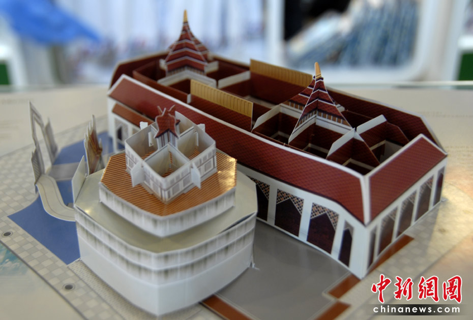 世博園區(qū)內(nèi)的特許商品店里,折紙場(chǎng)館惟妙惟肖,頗受游客的喜愛(ài)。圖為泰國(guó)館紙模型。中新網(wǎng)記者 吳歆 攝