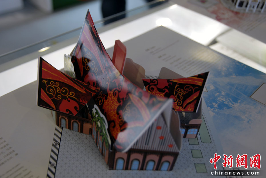 世博園區(qū)內(nèi)的特許商品店里,折紙場(chǎng)館惟妙惟肖,頗受游客的喜愛(ài)。圖為馬來(lái)西亞館紙模型。中新網(wǎng)記者 吳歆 攝