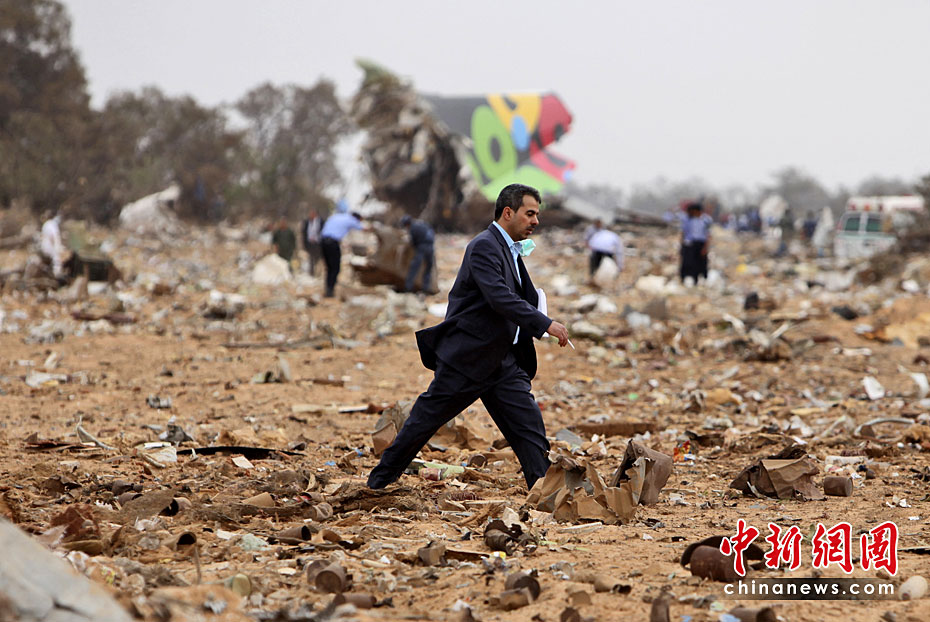 5月12日,一架從南非起飛的利比亞航班在利比亞首都的黎波里機(jī)場(chǎng)墜毀,機(jī)上103名乘客和機(jī)組人員遇難。圖片來(lái)源:中國(guó)新聞網(wǎng)