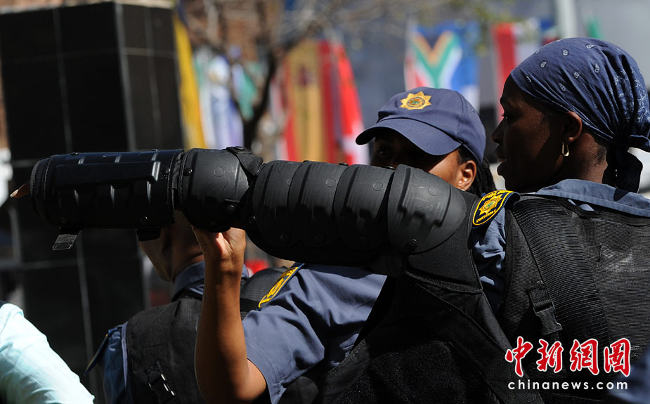 5月17日,南非約翰內(nèi)斯堡,警察舉行防暴演習(xí),為下個(gè)月舉行的世界杯做準(zhǔn)備。 圖片來(lái)源:中國(guó)新聞網(wǎng)