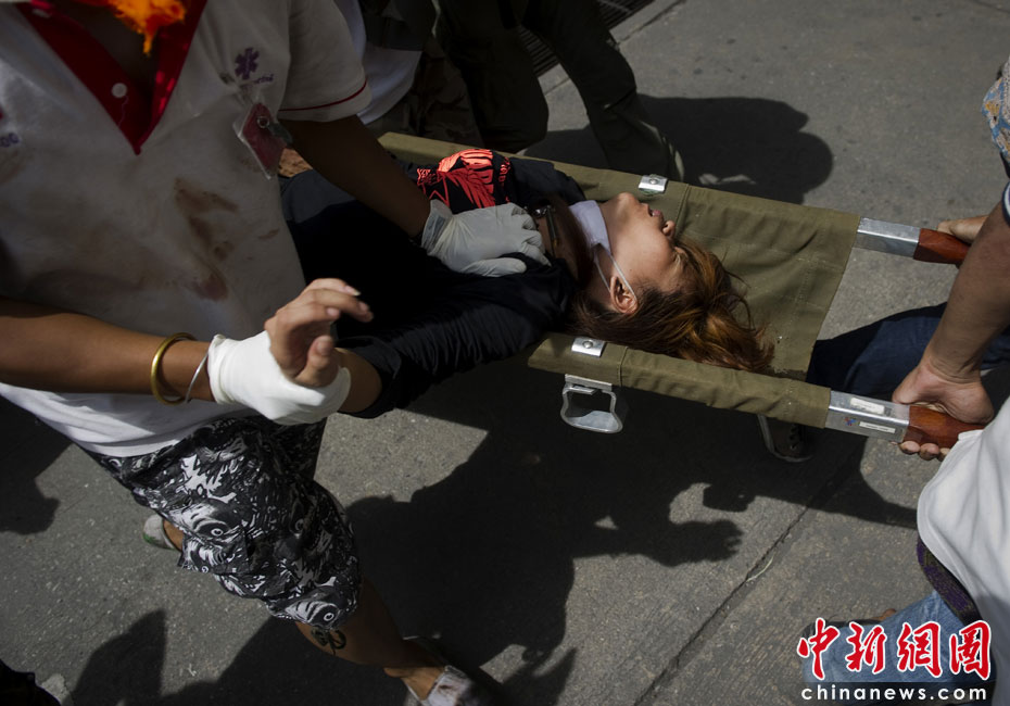 泰國(guó)紅衫軍領(lǐng)導(dǎo)人乍都蓬19日下午1時(shí)決定,向曼谷警方投降。同時(shí)向警方投降的還包括納塔兀、素蓬、翁醫(yī)師等紅衫軍核心領(lǐng)導(dǎo)人。紅衫軍領(lǐng)導(dǎo)人納塔兀責(zé)其支持者宣布,結(jié)束紅衫軍已持續(xù)了兩個(gè)多月的集會(huì)示威行動(dòng)。圖片來(lái)源:中國(guó)新聞網(wǎng)