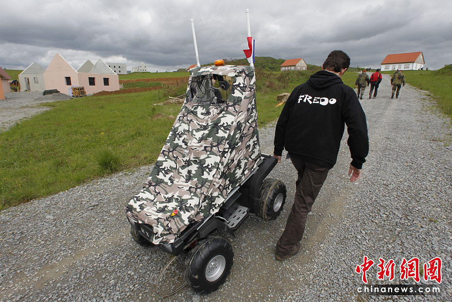 當(dāng)?shù)貢r間5月18日,德國南部哈默爾堡舉行了歐洲軍用機(jī)器人大賽。歐洲各國軍用機(jī)器人在大賽上一展身手。圖片來源:中國新聞網(wǎng)
