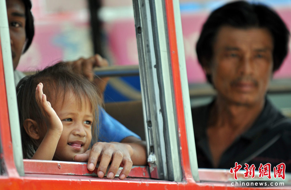 5月20日,數(shù)千名結(jié)束集會(huì)的外地“紅衫軍”示威者在曼谷拉差巴頌地區(qū)接受登記和安全檢查后,乘坐政府安排的車(chē)輛返回家鄉(xiāng)。