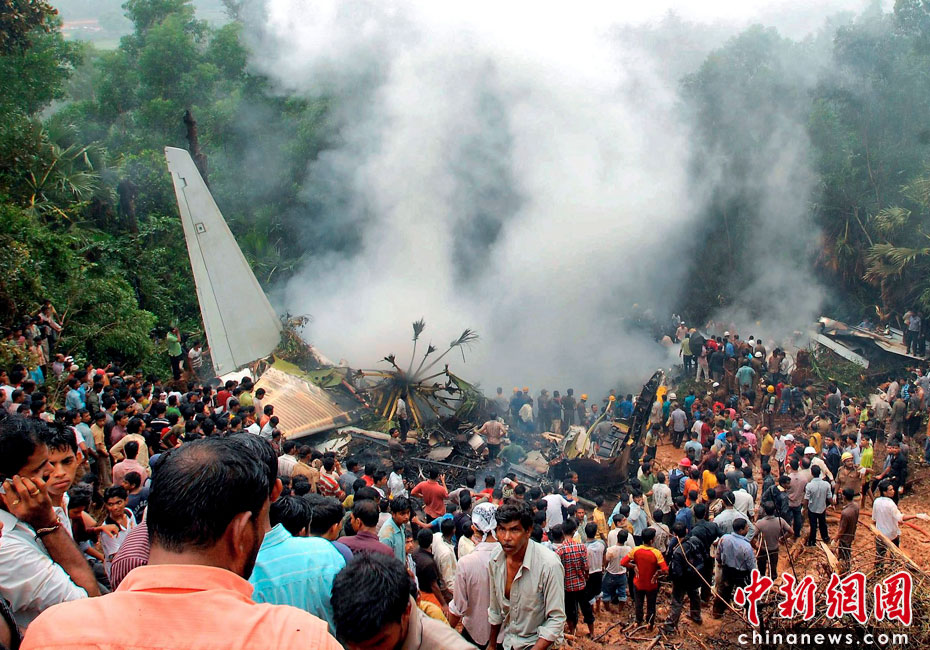 5月22日,印度一架客機(jī)在南部卡納塔克邦門格洛爾市降落時失事,造成至少160人喪生。目擊者稱,當(dāng)天早上6點(diǎn)左右,這架飛機(jī)準(zhǔn)備在馬拉格爾機(jī)場降落,但不知何故沖出跑道然后一頭扎到機(jī)場附近的叢林中起火爆炸。圖片來源:中國新聞網(wǎng)