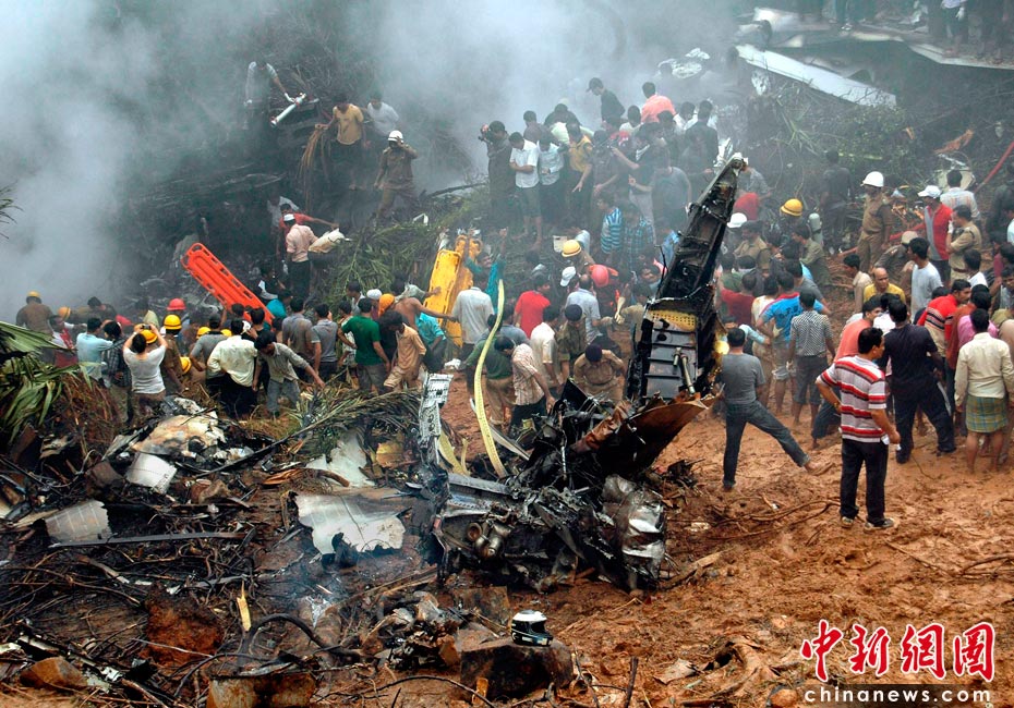 5月22日,印度一架客機(jī)在南部卡納塔克邦門(mén)格洛爾市降落時(shí)失事,造成至少160人喪生。目擊者稱,當(dāng)天早上6點(diǎn)左右,這架飛機(jī)準(zhǔn)備在馬拉格爾機(jī)場(chǎng)降落,但不知何故沖出跑道然后一頭扎到機(jī)場(chǎng)附近的叢林中起火爆炸。圖片來(lái)源:中國(guó)新聞網(wǎng)
