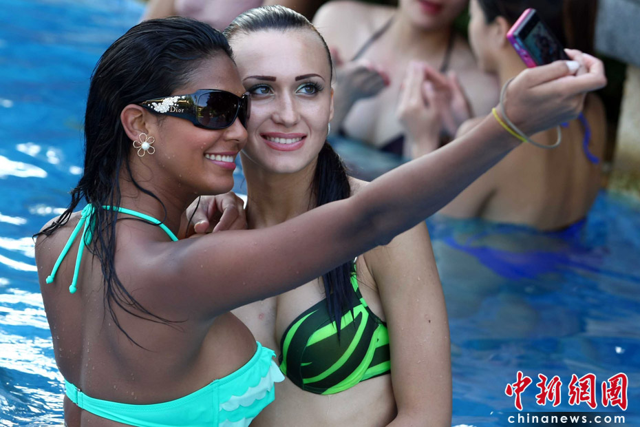 5月22日,一場沙灘趣味運動會在三亞海邊舉行,全球64位比基尼佳麗悉數(shù)登場,展現(xiàn)自己的運動天賦。中新社發(fā) 富田 攝