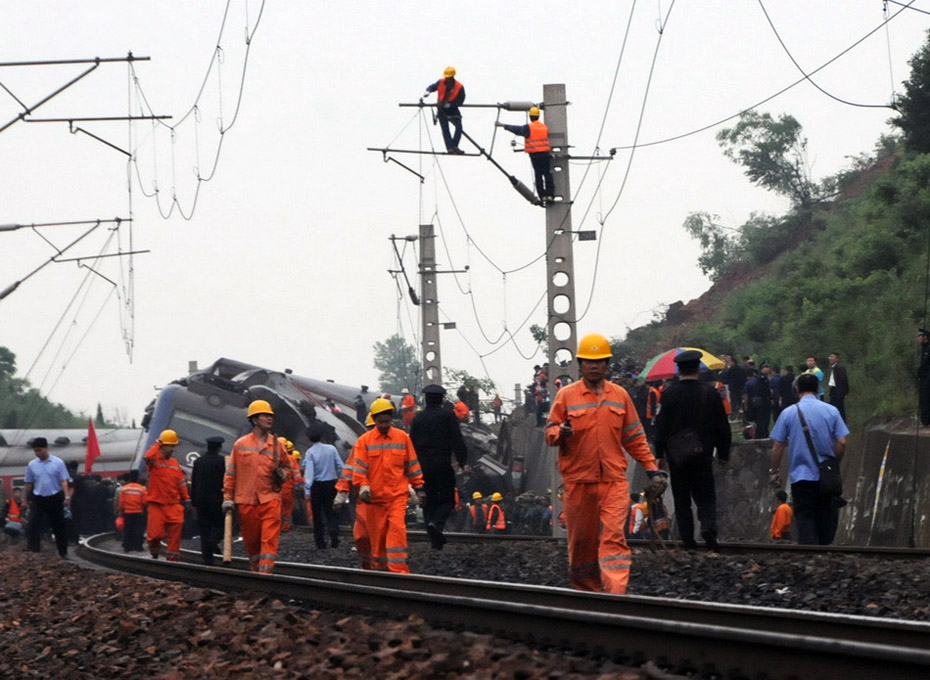 5月23日,2時(shí)10分,因連日降雨造成山體滑坡掩埋線路,由上海南開往桂林的K859次(編組17輛)旅客列車,運(yùn)行至江西省境內(nèi)滬昆鐵路余江至東鄉(xiāng)間(K699+700米處),發(fā)生脫線事故,機(jī)車及機(jī)后第1至9位車輛脫線,中斷上下行線路行車。目前,初步確認(rèn)3人死亡、10人受傷。事故正在進(jìn)一步清理中。(圖片來源:新華網(wǎng))