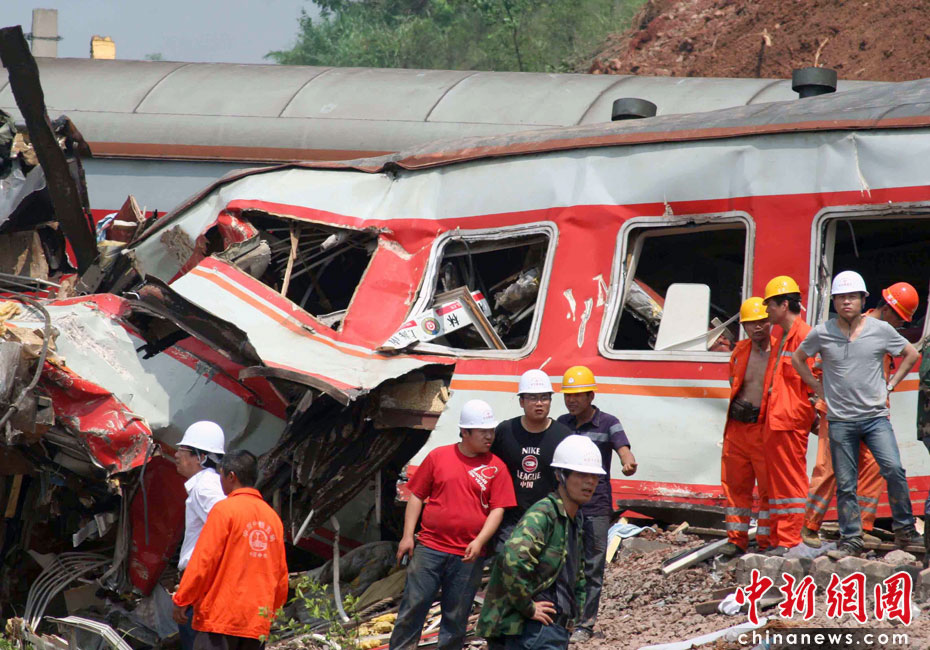 5月23日下午14時(shí),距離滬昆鐵路客運(yùn)列車脫線事發(fā)已經(jīng)12小時(shí),近萬(wàn)名武警、消防、醫(yī)護(hù)、交警、特警仍在事故現(xiàn)場(chǎng)緊急救援,被埋車廂已經(jīng)清理完畢,由于車廂受到嚴(yán)重?cái)D壓,里面可能還有遇難者遺體尚未取出。中新社發(fā) 艾永全 攝