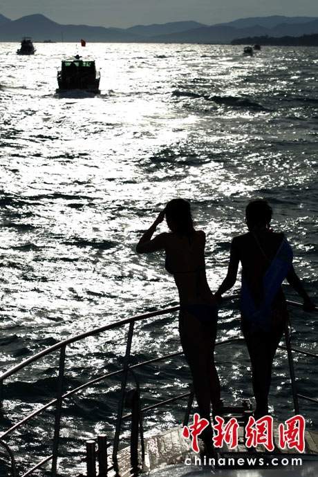 5月23日,全球64位比基尼佳麗們參加了三亞“清涼一夏 文化三亞”夏季旅游促銷活動(dòng)的啟動(dòng)儀式及系列主題活動(dòng),與三亞市民和游客親密接觸,跳起了歡快的竹竿舞,并乘豪華游艇暢游三亞。中新社記者 富田 攝
